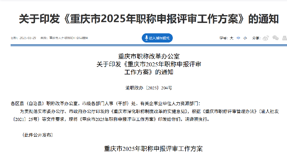 重慶市2025年職稱申報評審工作方案出通知啦!